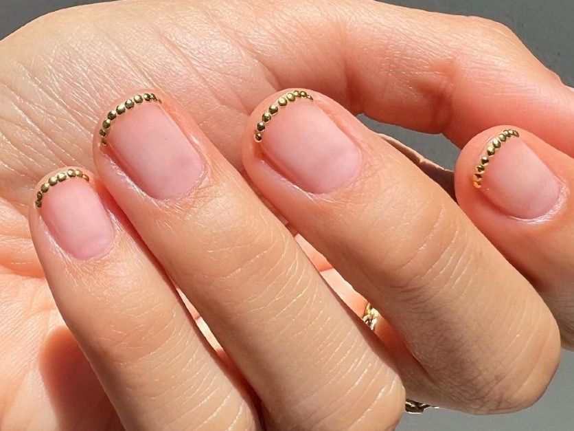 Pro Tip: Choose a metallic gold liner pen for easy application, and balance with all-nude fingers on one hand.